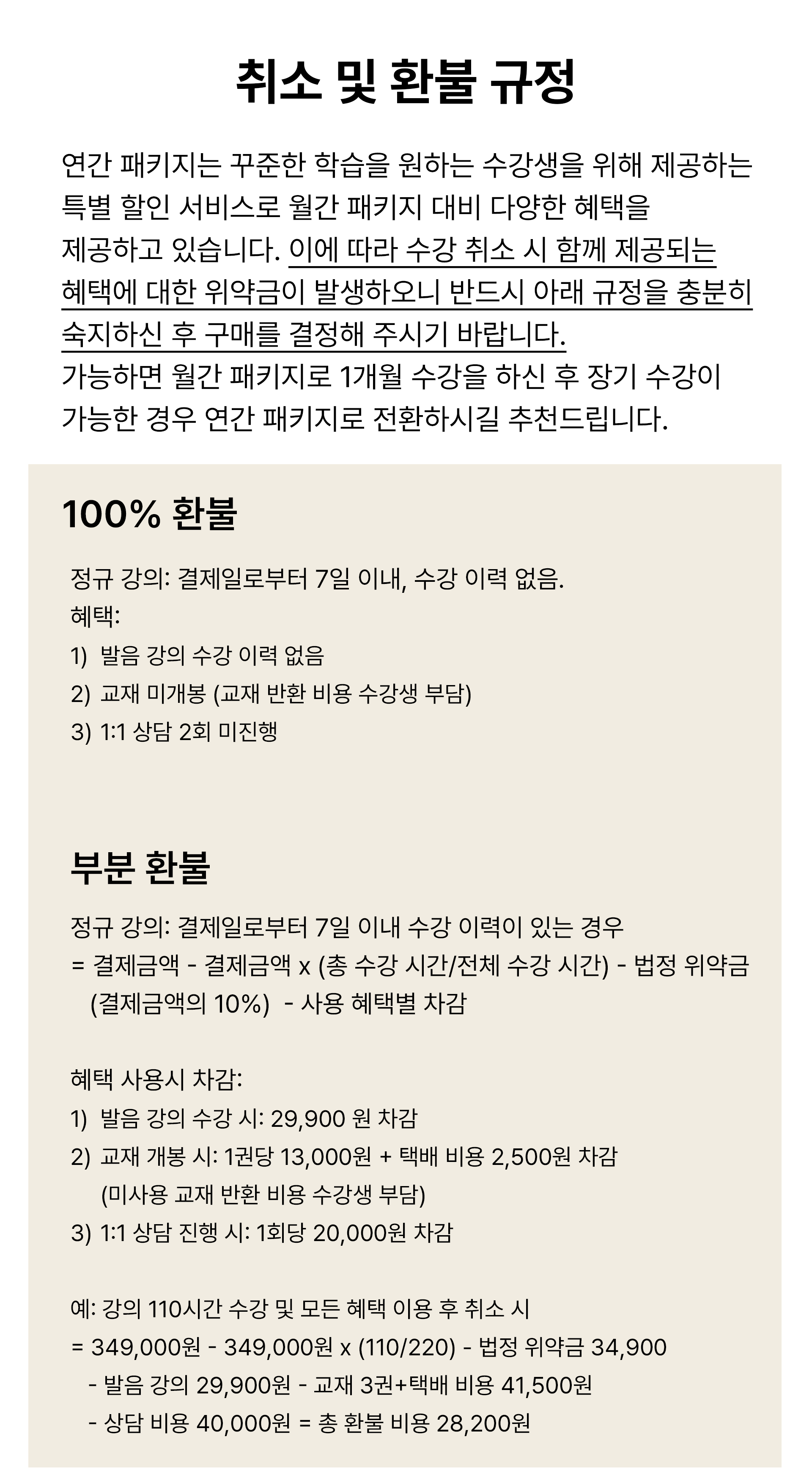 * 페이지 하단의 취소/환불 규정을 반드시 확인해주세요.