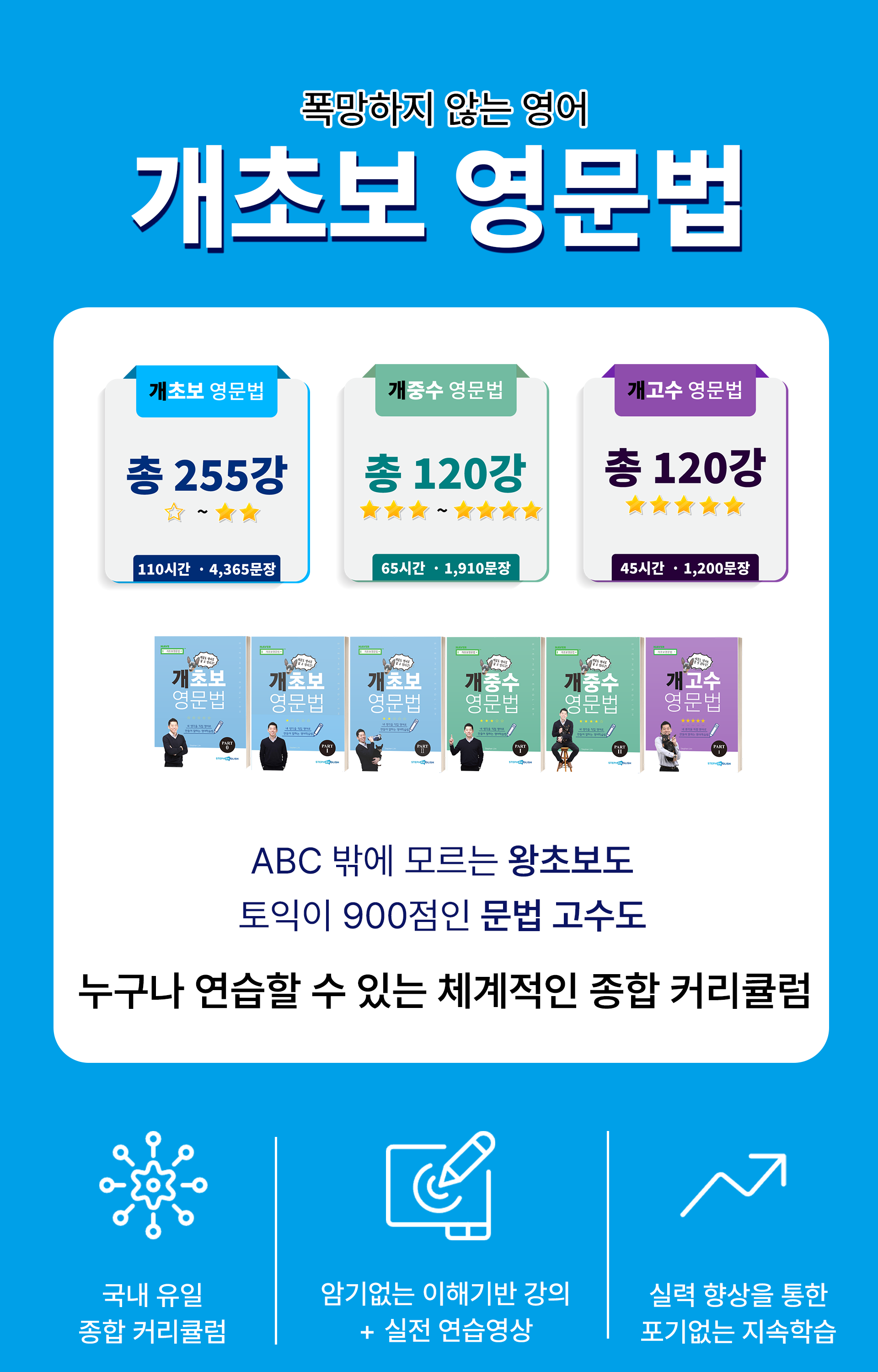 * 개초보영문법 교재 3권이 무료로 배송됩니다.